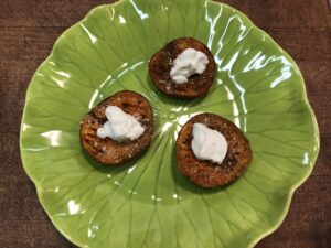 11. Remove from oven and garnish with fresh thyme and a small dollop of yogurt or sour cream.