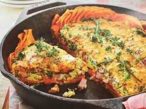 Cast Iron Ham and Cheese Quiche with Yam Crust