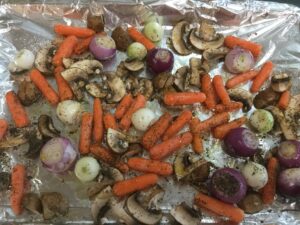 10. Place the mushrooms, onions and carrots around the thighs.