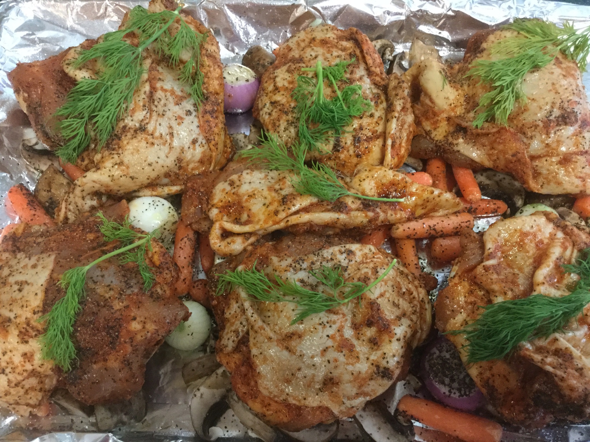 9. Place the thighs on foil lined baking sheet.