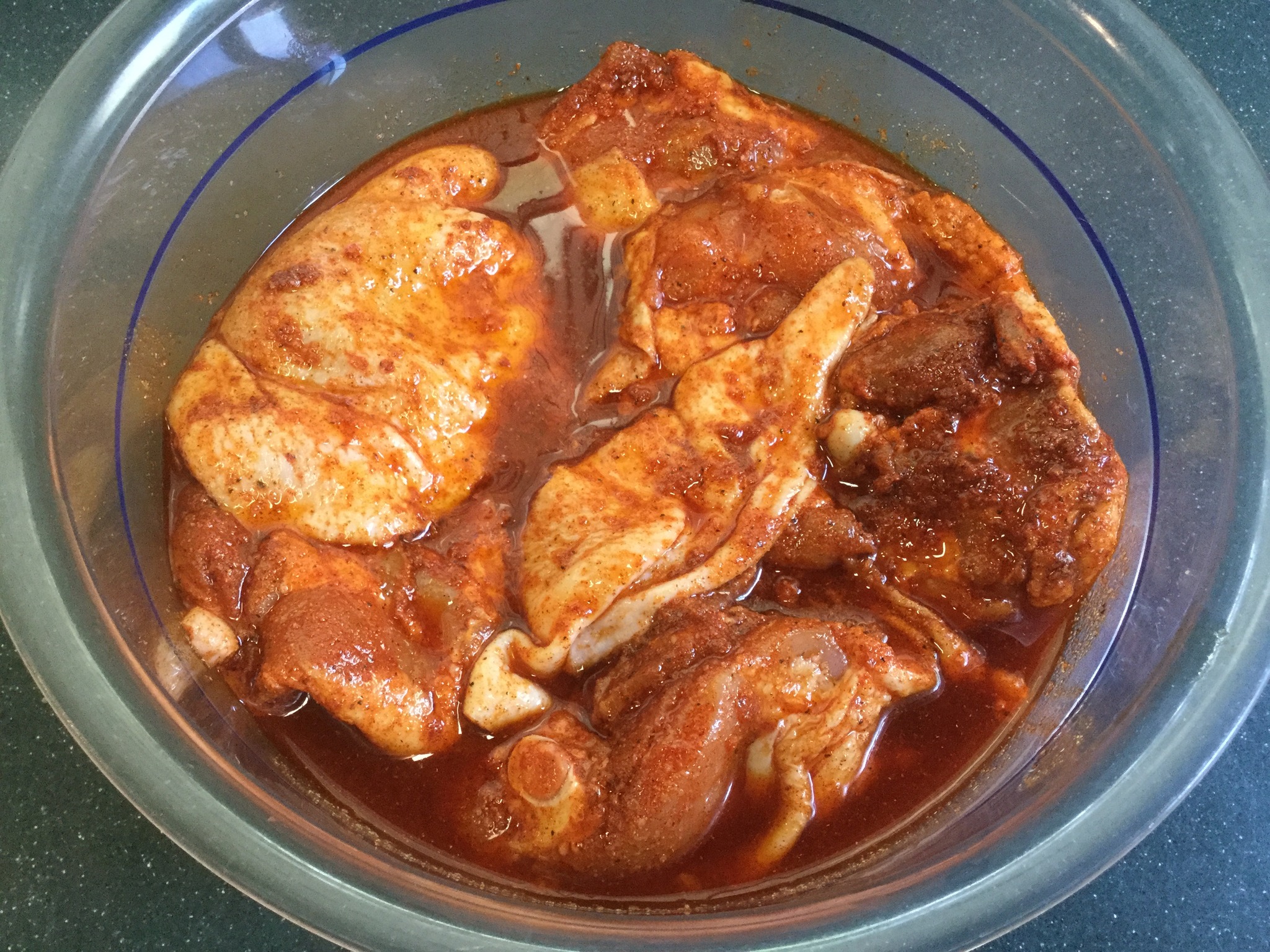 6. Drain the marinade off the chicken thighs and pat dry with paper towels.