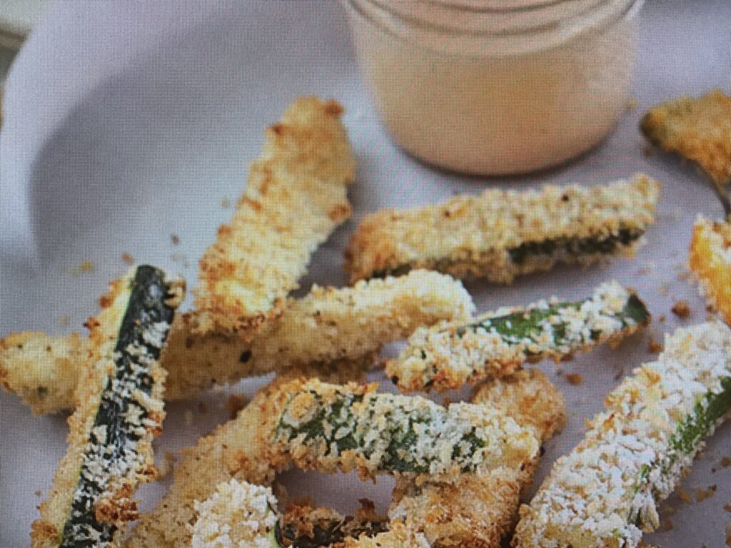 CRISPY ZUCCHINI FRIES WITH TANGY HORSERADISH DIP