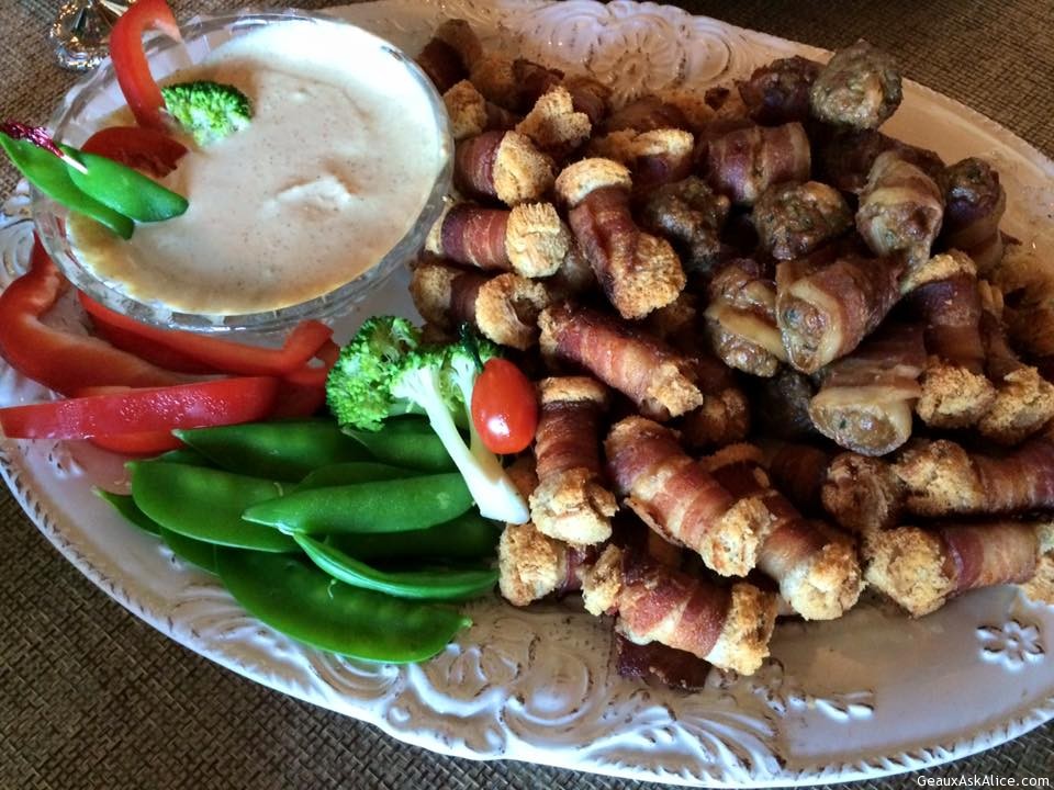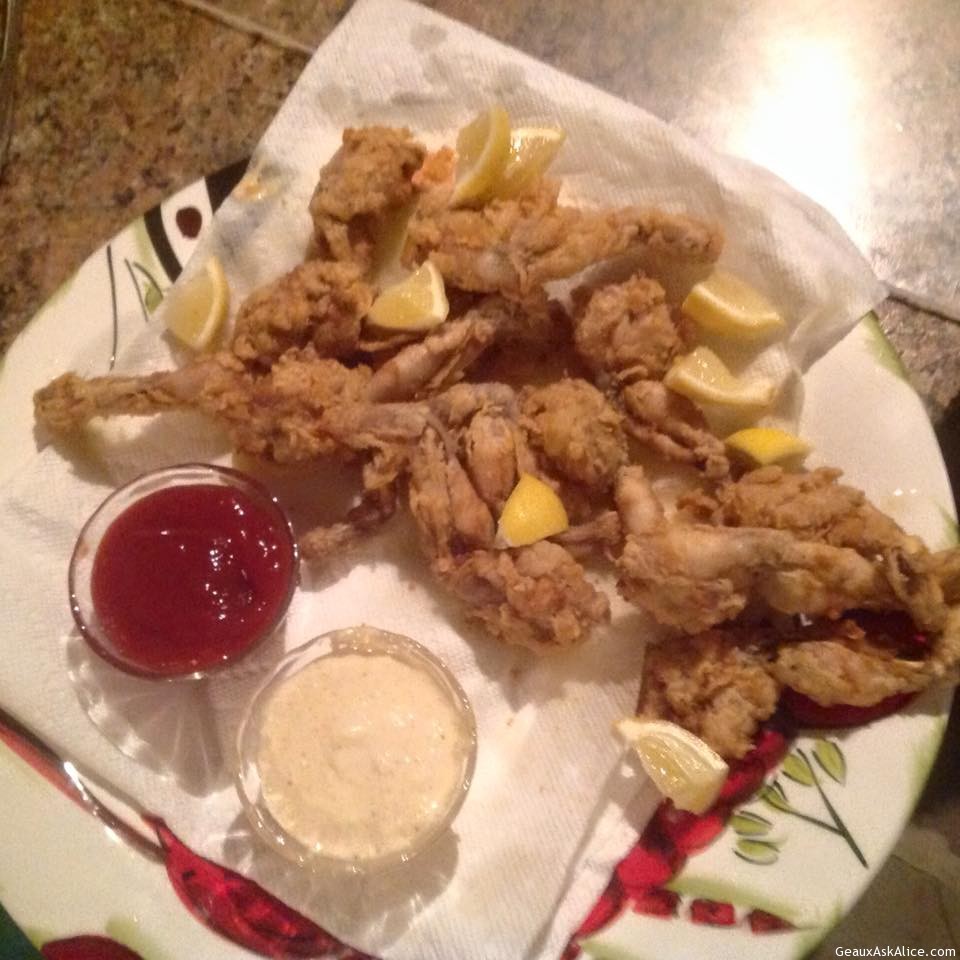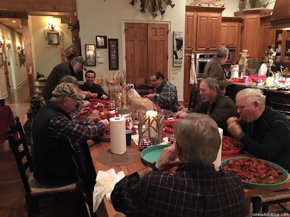 Crawfish Boil Monday night for hunters was a huge success!Crawfish Boil Monday night for hunters was a huge success!Pepper Jelly DipAssorted Cheeses & PateCaprese Skewers with Fig/Balsamic GlazeJenny Beauregard brought the Asian Meatballs with Curry Dipping SauceShe also had some nice veggies on the side. Beautiful dish and yummy!Ray Bellow is in charge of the remaining menu! Crawfish Étouffée, Fried Catfish Bites, Fried Frog Legs.Ok the froggies hopped on in and the fried fish came in swimmingly !