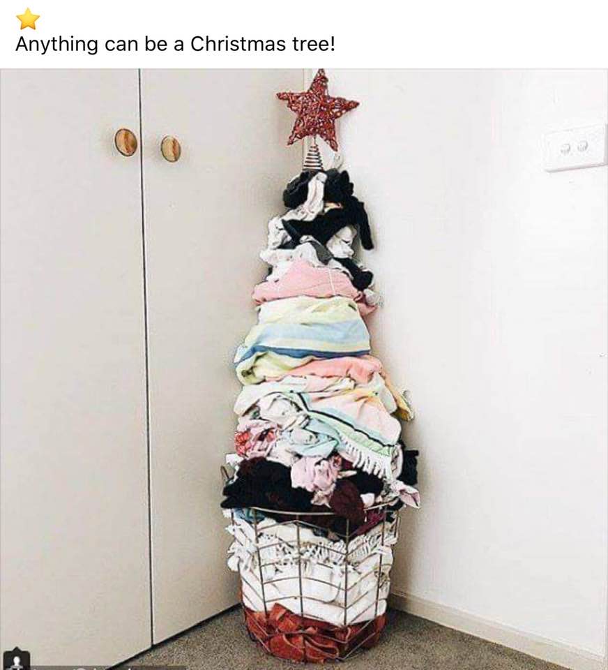If u need some new ideas for that 2020 Christmas Tree, here you GEAUX! The one on the left may be hard to do with that limited supply. The one on the right is easier. I have stacks of laundry if u need more !