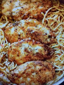 8. Serve chicken on top or next to pasta and sprinkle with more Parmesan cheese.