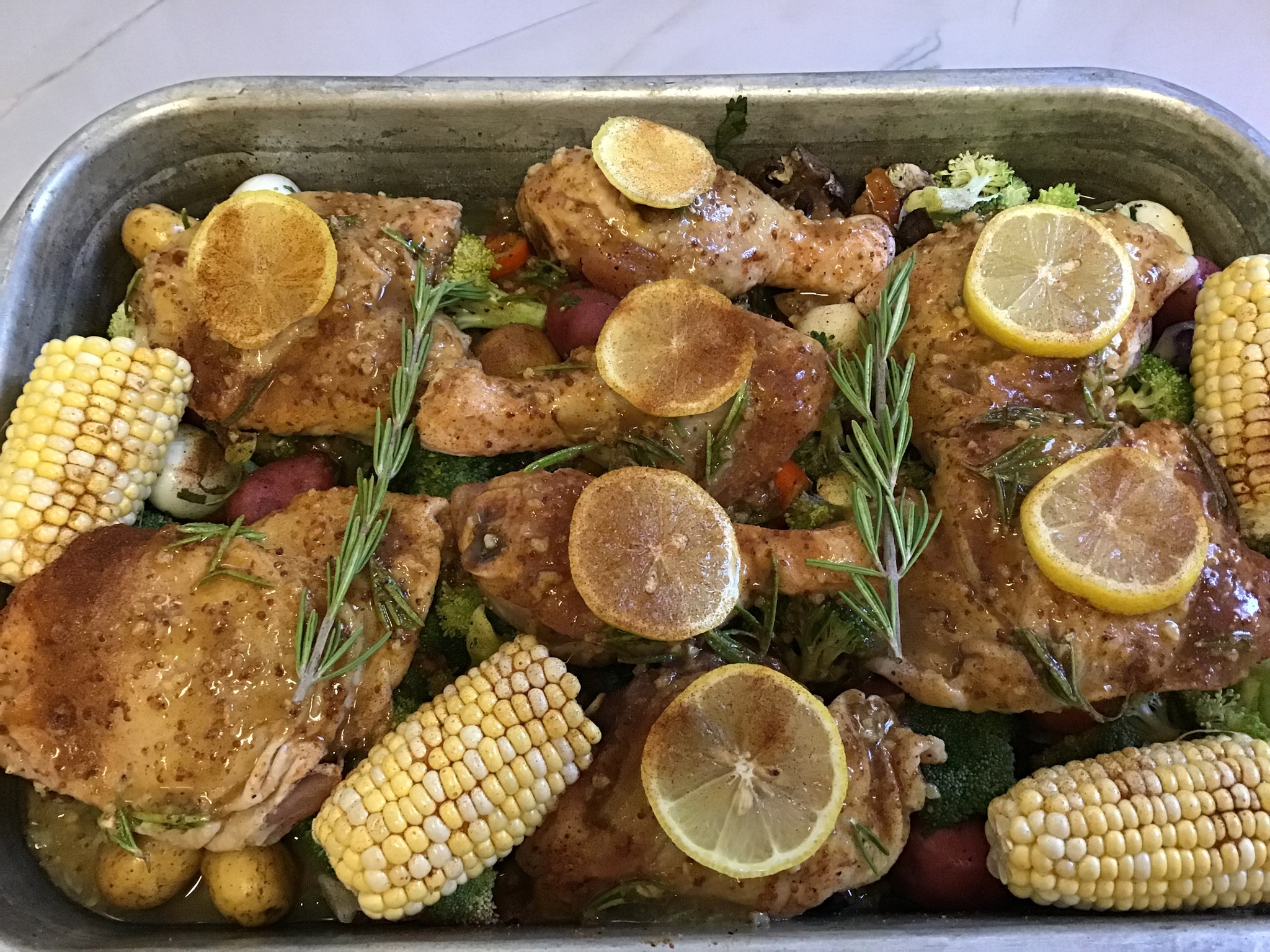 ONE-PAN ROSEMARY-LEMON CHICKEN WITH POTATOES AND VEGGIES