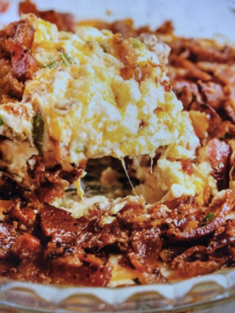 1. Mix all ingredients, except bacon and place in pie plate.