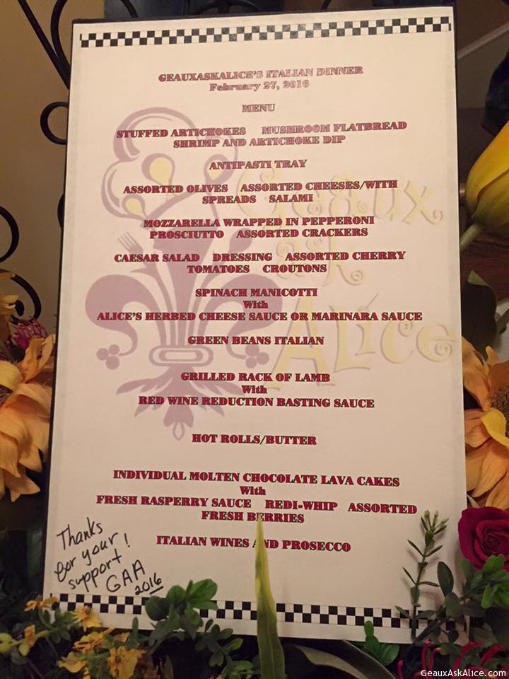 Menu for the Italian Gang!