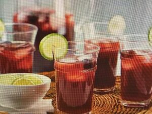 1. In large pitcher, stir together cherry juice, lime juice, lemon juice and sugar until the sugar dissolves.