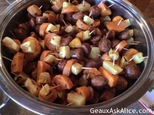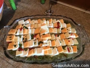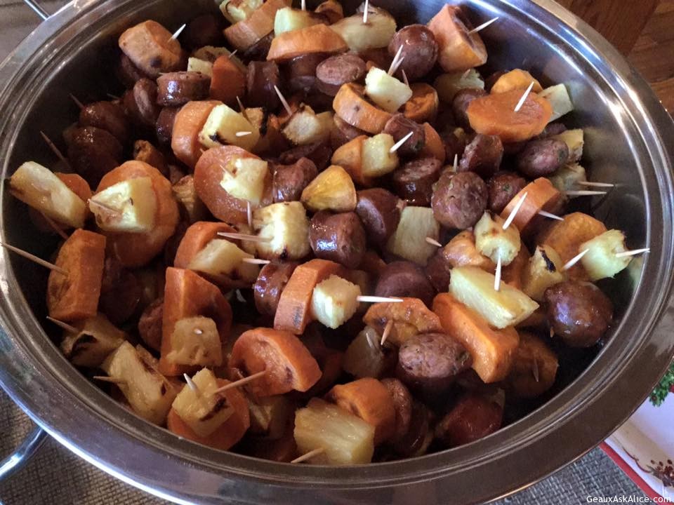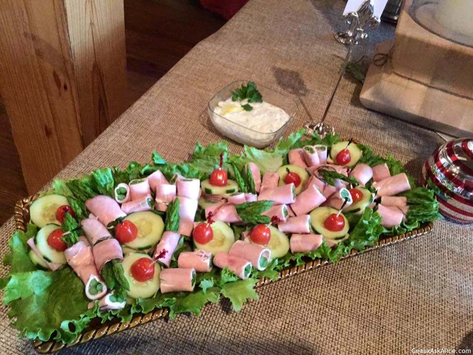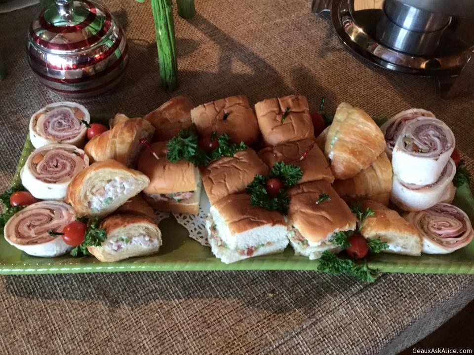 Turkey/Ham Veggie WrapsCorn DipMarinated CheeseShrimp RemouladeAssorted Finger SandwichesJalapeño Sausage with Yams and Pineapple