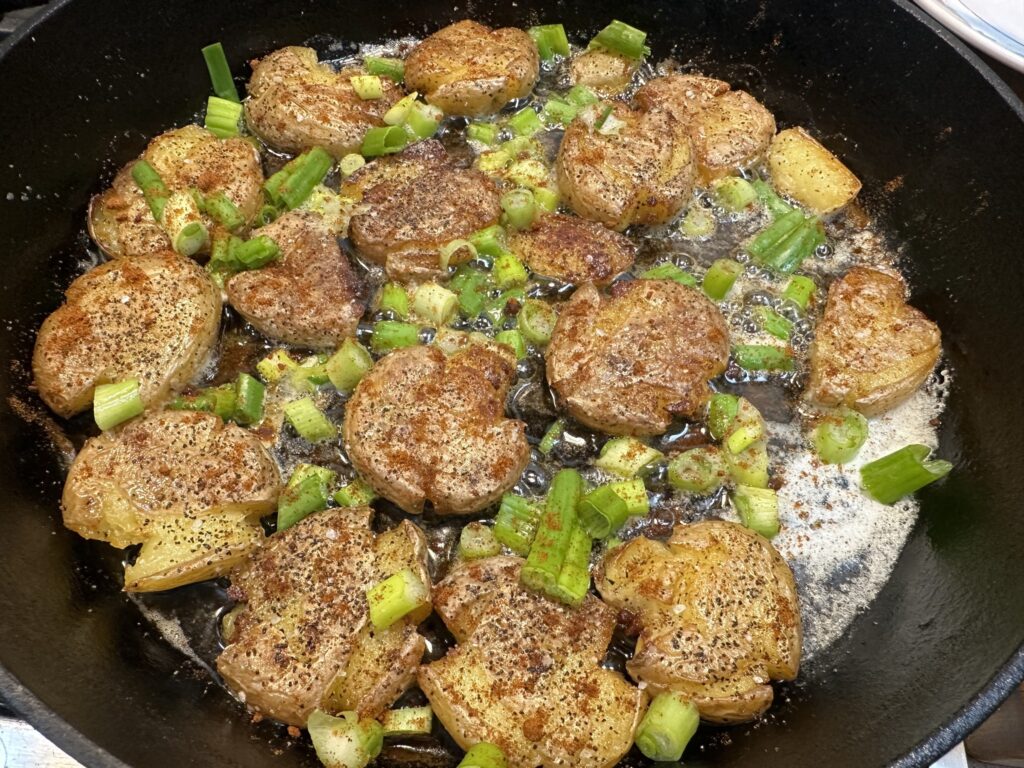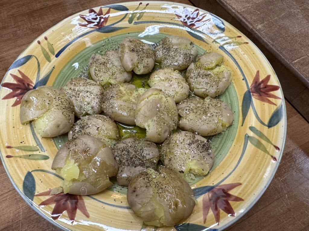 - Place potatoes on platter and smash the potatoes.